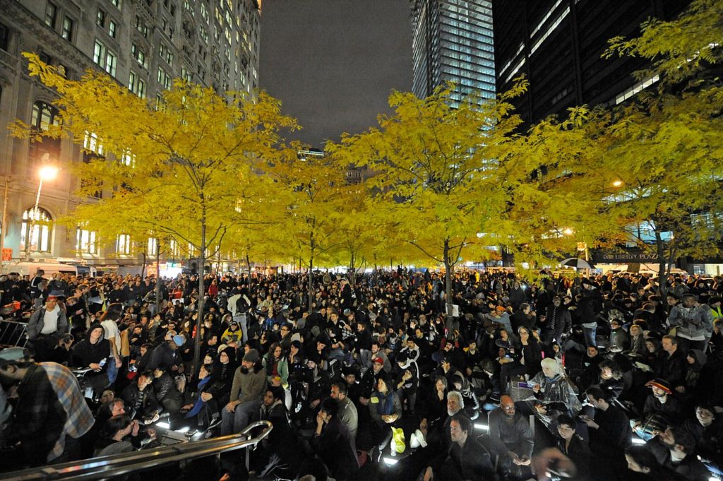 Manifestanti di Occupy Wall Street a Zuccotti Park nel settembre 2011