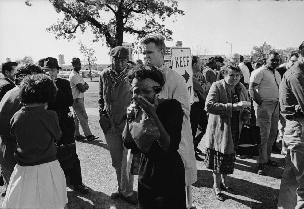 Un folla apprende la notizia della morte del Presidente Kennedy
